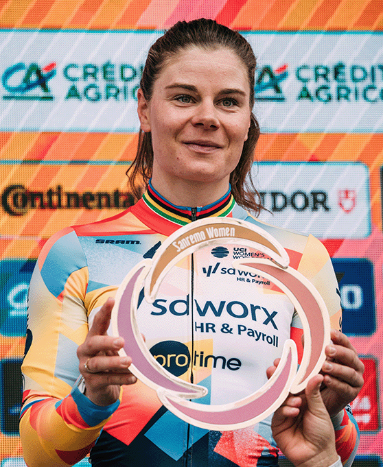 Under the Sanremo sun, Lotte Kopecky wrote a special chapter in the history of women’s cycling. The Belgian champion tackled a tough and tense race with clarity and courage, remaining right in the thick of the action right up to the decisive moment. On the straight stretch of Via Roma, she unleashed all her power, turning her team’s efforts into an unforgettable triumph. A victory of class, heart and determination, which crowns Kopecky this year’s queen of Sanremo Women.