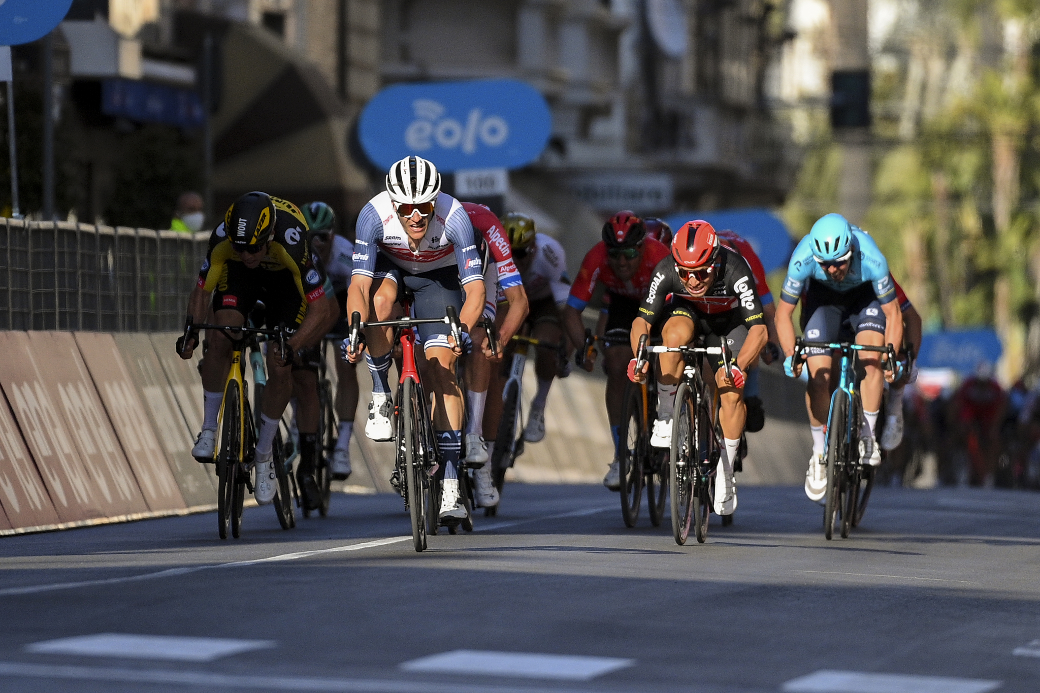 But this year’s Milano San Remo was decided – or perhaps we should say “undecided” – by an out and out sprinter, for Caleb Ewan’s presence in the final selection complicated the thought processes of the other favourites, already dimmed after 295 km in the saddle. After the race, Wout Van Aert, third, said, “It was difficult to take the right decision in the end.”