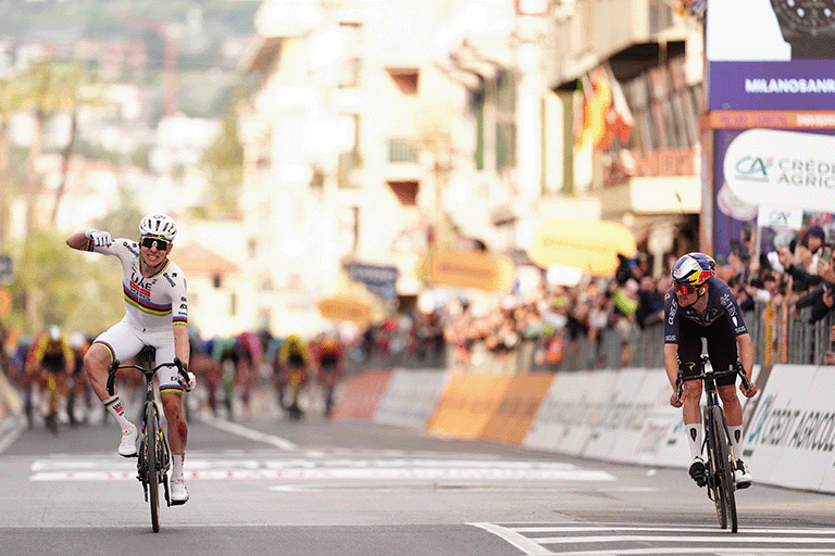 The sport evolves and speeds keep rising, yet Milano–Sanremo remains the same unpredictable roulette. The Poggio is still the decisive moment to try to avoid a sprint, and often it works: in 2017, a three-man photo finish saw Michał Kwiatkowski beat Peter Sagan – who would finish in the top 10 nine times without ever winning – and Julian Alaphilippe.