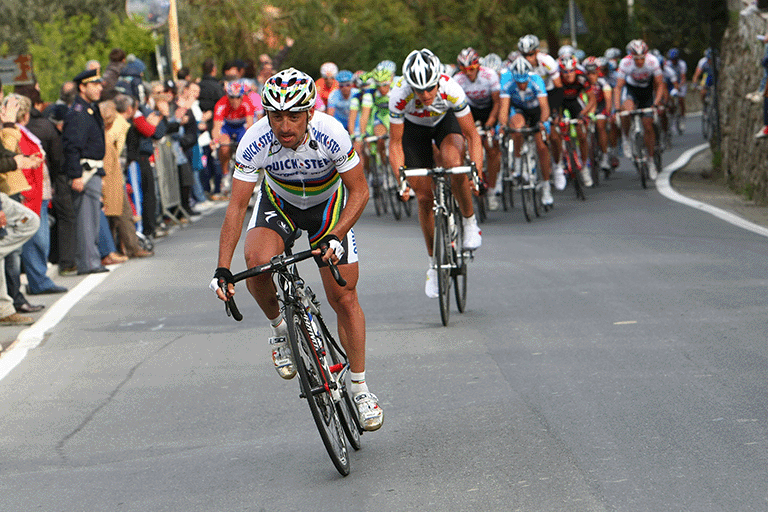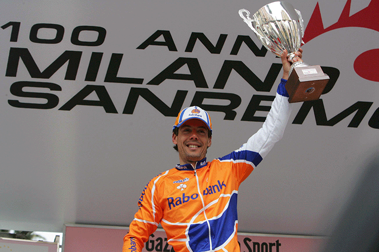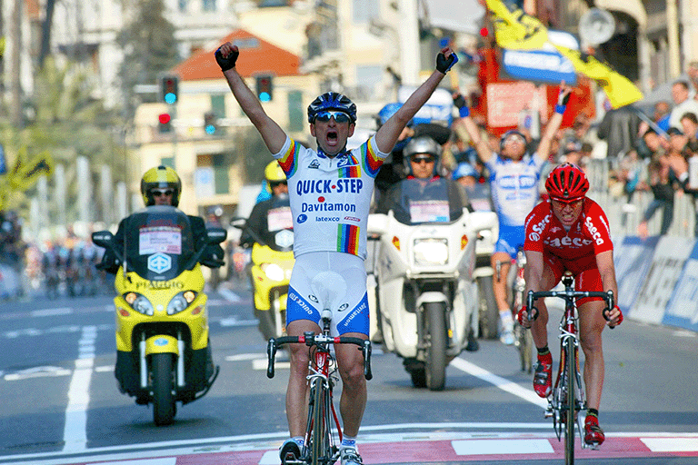 One of the most dramatic victories in recent Milano-Sanremo history undeniably belongs to Óscar Freire. His first, in 2004, was decided by just 11 thousandths of a second. Erik Zabel, convinced he had won, had already raised his arms after four previous victories, but he had not accounted for Freire’s instinct and killer finish. Positioned perfectly on Zabel’s wheel, Freire surged in the final metres to claim his first Monument. “Sanremo can be lost at any point over the 300 kilometres, but it is won only in the final kilometre,” was his mantra. He would go on to win again in 2007 and 2010, both times from reduced bunch sprints. He may not have had the highest top speed, but after long, demanding races he always knew how to deliver. Three Milano-Sanremo titles and three World Championships are no coincidence.