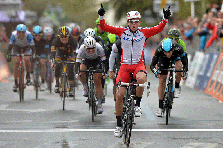 Between the late 1990s and early 2000s came the era of the great sprinters, led by Erik Zabel, who won four times between 1997 and 2001, only denied by Andrei Tchmil’s finisseur move in 1999. Then came victories for Mario Cipollini (2002), Alessandro Petacchi (2005), Mark Cavendish (2009), Alexander Kristoff (2014), John Degenkolb (2015) and Arnaud Démare (2016), along with Óscar Freire’s remarkable hat-trick in 2004, 2007 and 2010.